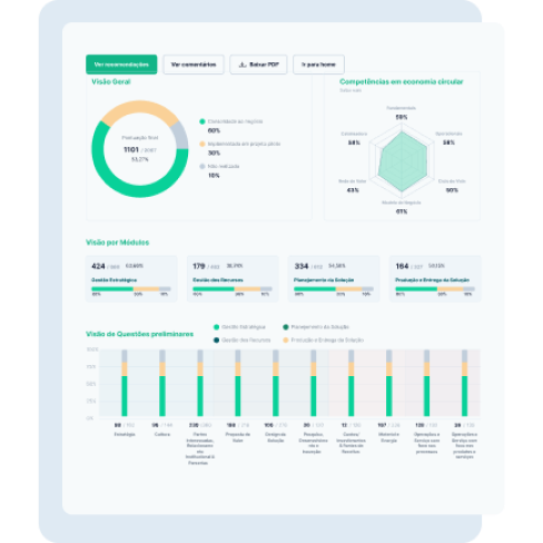 Assim que novas medidas de economia circular forem implementadas em sua empresa, é possível revisar a avaliação e receber um novo diagnóstico e novas recomendações.