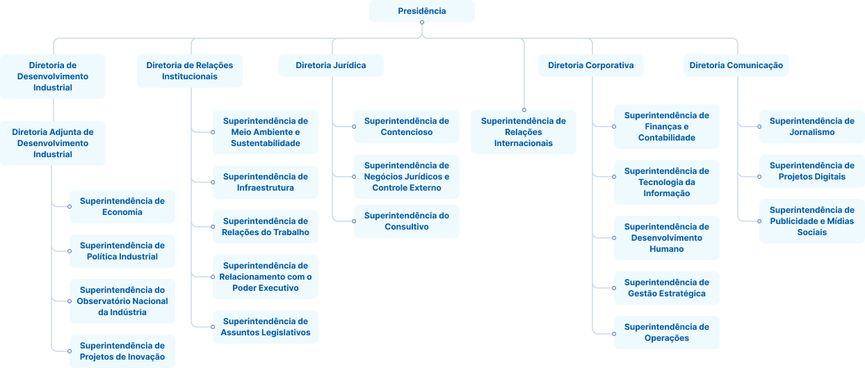 O presidente da CNI lidera a nossa diretoria e Conselho de Representantes, além do Fórum Nacional da Indústria. No caso de empate nas reuniões do Conselho de Representantes e da diretoria, o presidente dá o voto de desempate. Somente nas reuniões da diretoria, o presidente tem voto obrigatório. O presidente é eleito para um mandato de 4 anos e pode ser somente reeleito uma vez.